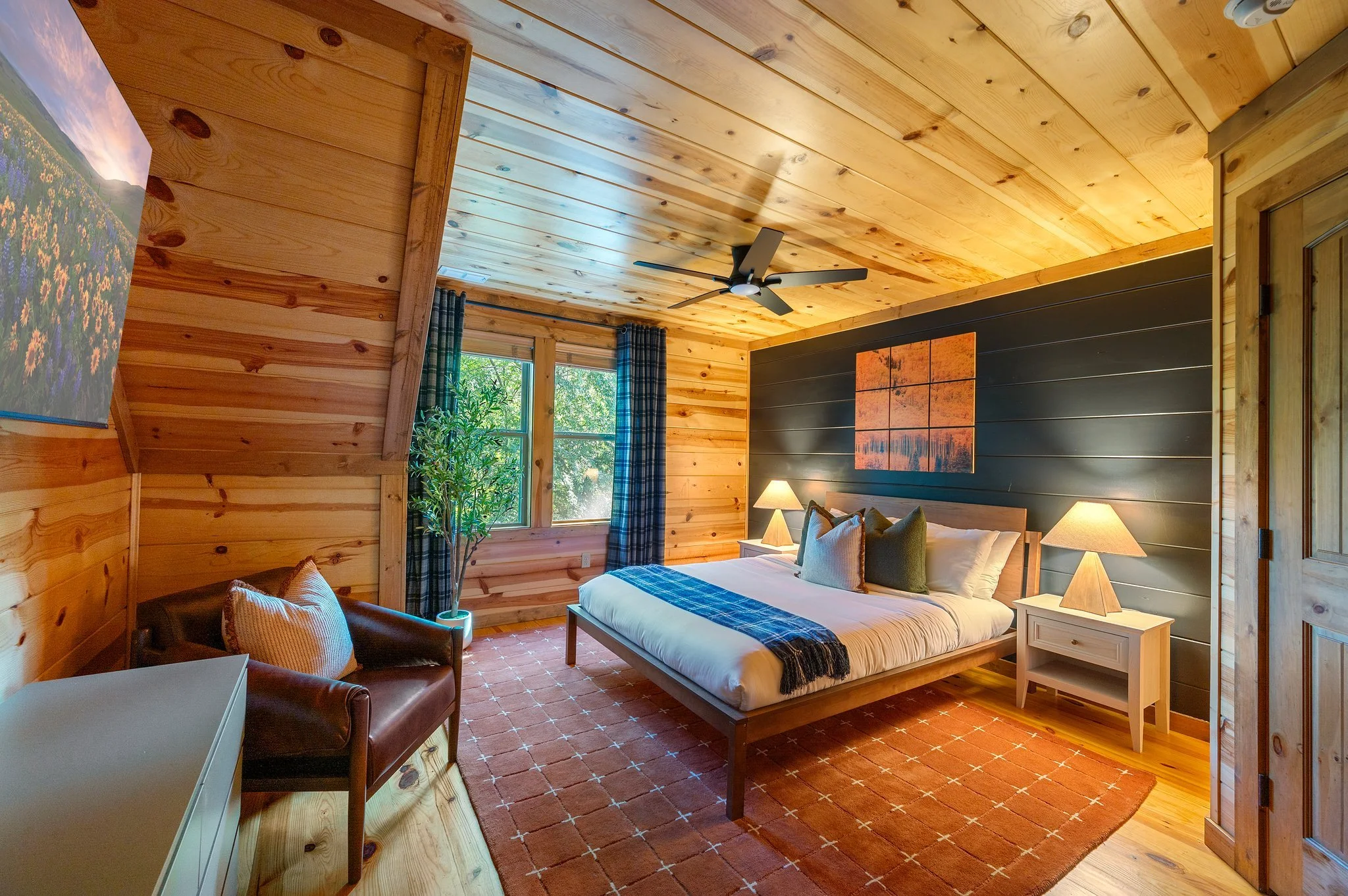 The house provides a tranquil retreat to unwind while enjoying stunning views. Large windows invite natural light and frame picturesque landscape scenes. The spacious outdoor deck is perfect for morning coffee or evening sunsets. Whether entertaining or seeking peace, The Copper Lodge is an ideal spot to relax amidst nature.